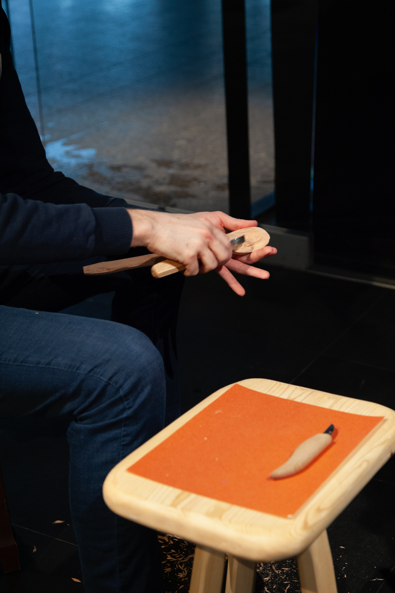 La commode dans ma chambre a été créée par mon arrière-grand-père avec des outils simples, il y a au moins cinquante ans. Je la regarde, mon regard suit le grain du cerisier et je me pose cette question : se peut-il qu’une partie de la solution à la surconsommation, à l’obsolescence programmée et à la crise climatique soit l’artisanat? L’artisanat lie l’objet à une personne par un lien singulier. Il devient plus difficile de mettre aux ordures un objet qui a été fait avec intention, surtout s’il est en bonne condition et réalisé par un proche. Je propose donc au public de créer un objet utile et durable – une cuillère en bois –, tout en engageant une discussion informelle sur les enjeux environnementaux, les frontières de l’art et notre rapport aux objets. Il s’agit d’une rencontre, d’une conversation, car l’échange est le cœur de ce projet.